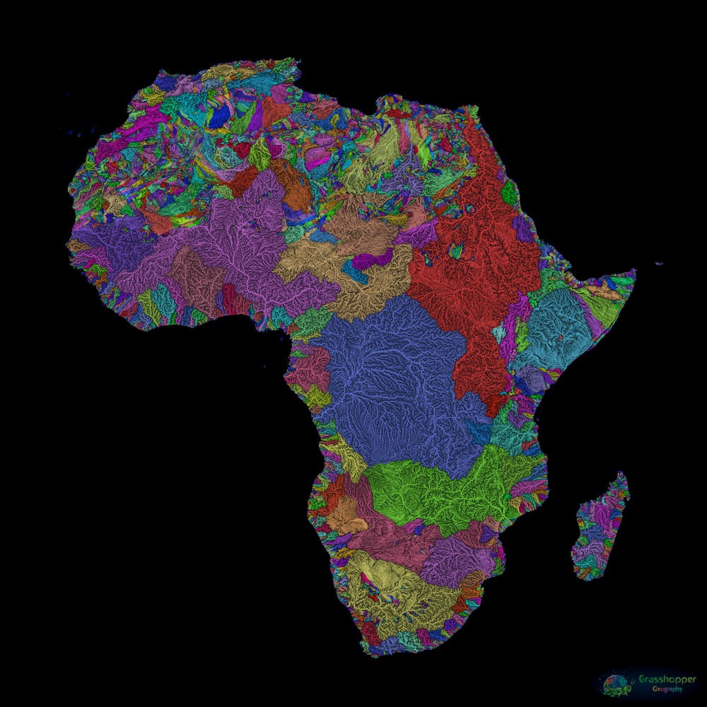À l’heure où les évènements climatiques ravagent nos régions qui souffrent cruellement de l’assèchement de leurs cours d’eau, que des villes entières se retrouvent sans eau potable et pourraient soudainement être balayées par des pluies diluviennes, les cartes des bassins fluviaux de ce “géogr’art’phe” prennent alors tout leur sens pédagogique.