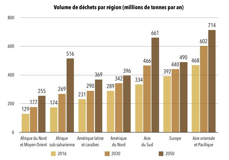Aujourd’hui cela représente en moyenne dans le monde 740 g de déchets par jour et par habitant. Cette moyenne est à mettre en perspective avec le niveau de développement de chaque pays. Ainsi futura précise que bien qu’ils ne représentent que 16 % de la population mondiale, les pays développés génèrent à eux seuls 34 % des déchets de la planète !