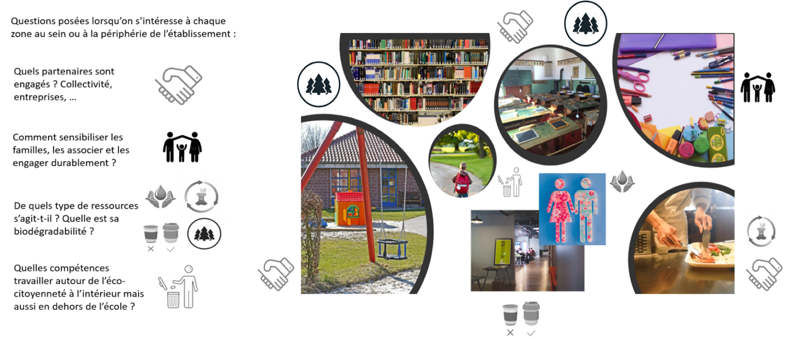 Appréhender le Zéro déchet au sein de nos établissements s’inscrit donc dans cette démarche. Elle nécessite une véritable pédagogie d’exemplarité et de cohérence, au risque de soulever de l’incompréhension avec certaines familles qui pourraient se sentir jugées ou critiquées dans leurs modes de vie. Un engagement collectif promu et affiché pose des piliers solides autour de la transition et est le garant d’une recherche systématique de la continuité d’initiatives vertueuses.